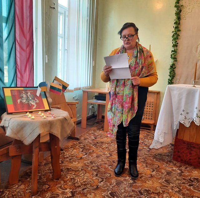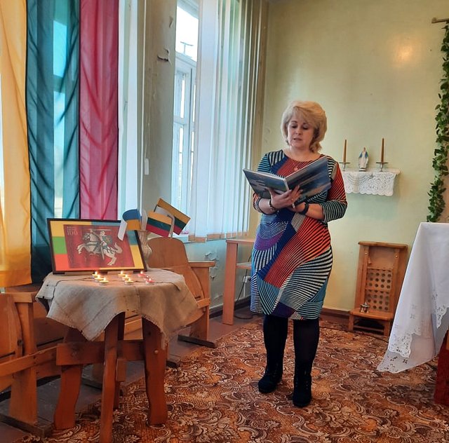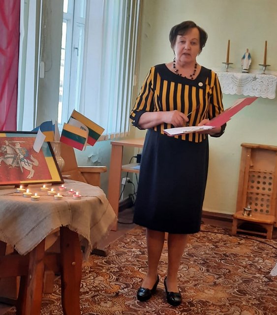 Tylos minute buvo pagerbti žuvusieji Ukrainos laisvės gynėjai. Renginio pabaigoje Arūnas ir Jūratė sugiedojo Ukrainos himną, po kurio ne vienas braukėme ašarą. Bibliotininkė Vanda dėkojo kunigui ir visiems dalyviams. Atlikėjams įteikė žydinčių žibuoklių vazonėlius. Dėkojame Dysnos bendruomenės pirmininkei Jolantai Jurėnienei už koplyčios papuošimą.