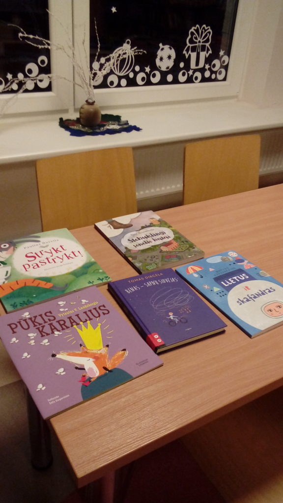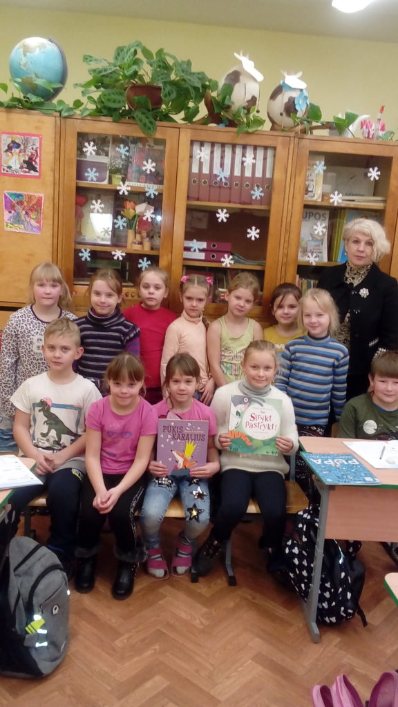 Didžiasalio biblioteka glaudžiai bendradarbiauja su Didžiasalio „Ryto“ gimnazija, Gruodžio mėnesį filialo bibliotekininkė G. Jurgelėnienė jaunuosius skaitytojus, gimnazijos pradinukus, supažindino su akcija „Metų knygų rinkimai“ ir joje šiais metais dalyvaujančiomis vaikų kategorijos knygomis bei jų autoriais. Vaikai patys pasirinko kokias knygas skaitys. Pirmokai išsirinko net dvi – V. V. Landsbergio ir D. Karpavičiūtės knygą „Pūkis karalius“ bei P. Norvilos ir J. Šulskytės „Strykt pastrykt!“, antrokai – D. Zavedskaitės ir J. Šarmavičiūtės „Lietus ir skafandras“, trečiokus sudomino T. Dirgėlos ir D. Karpavičiūtės „Benas – sapnų siuvėjas“, o ketvirtokams liko perskaityti I. Zarambaitės ir V. Padimanskaitės „Stebuklingus senelio batus“. Skaitymai vyks namuose su tėveliais, pamokų metu, gimnazijos bibliotekoje per pertraukas. Pasibaigus skaitymams, vaikai pieš iliustracijas, kurs reklamą ir balsuos už labiausiai patikusią knygą.