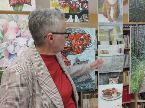 Tapybos darbuose katinai pilni jiems būdingos paslapties, nors kai kur tos paslaptys drastiškai atskleidžiamos: matom katiną, pasisotinusį žuvimis, nustebintą jam neregėtų „gėlių“, keistų žuvų.
