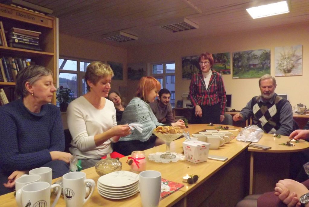 Vėlyvą gruodžio 12-osios pavakarę į popietę „Pasišnekučiuokime prie arbatos puodelio“ Palūšės bibliotekoje rinkosi skaitytojai nešini sausainukais, saldainiukais, „grybukais“, šimtalapiu ir kalėdinėmis dekoracijomis. Gruodžio 15-oji – Tarptautinė arbatos diena, tą dieną arbatos mėgėjai degustuoja naujas šio gėrimo rūšis. Bibliotekoje šios popietės metu ir buvo degustuotos  japoniškos žaliosios bei indiškos juodosios arbatų rūšys, kurias bibliotekos skaitytojams ir bendruomenės nariams dovanojo maskviškis, vasaras Palūšėje leidžiantis, arbatų verslo savininkas Borisas.
