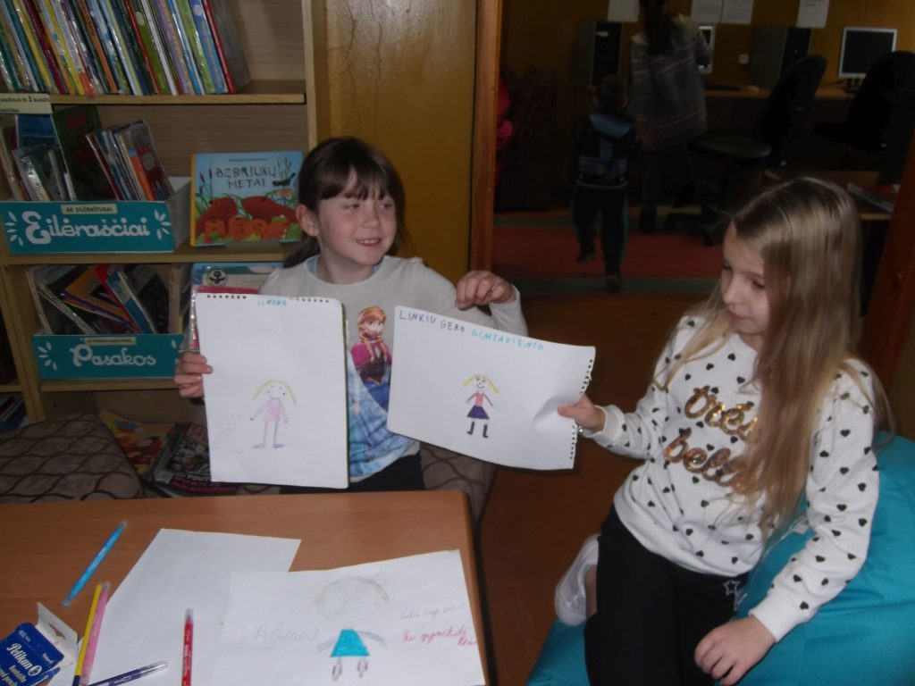 Vidiškių vaikai susirinko į Pepės gimtadienį, kuris yra švenčiamas lapkričio mėnesį, bibliotekoje. Bibliotekininkė priminė, kad knygą „Pepė Ilgakojinė“ parašė rašytoja Astrida Lindgren ir skyrė ją savo dukrai Karin Nyman. Tai istorija apie nuoširdžią ir stiprią mergaitę, kuri gyveno viena Švedijos kaimelyje su beždžionėle bei arkliu, turėjo du ištikimus draugus – Tomį ir Aniką. Paskaitę knygos ištrauką, kaip Pepė švenčia savo gimtadienį, vaikučiai tai nupiešė savo piešiniuose. Palinkėję Pepei laimės, išradingumo, svajonių, daug dovanų, vaikai susėdo žiūrėti filmuko. Visų nuotaika buvo tikrai puiki, o dar ir gabalėlis torto kiekvienam teko…