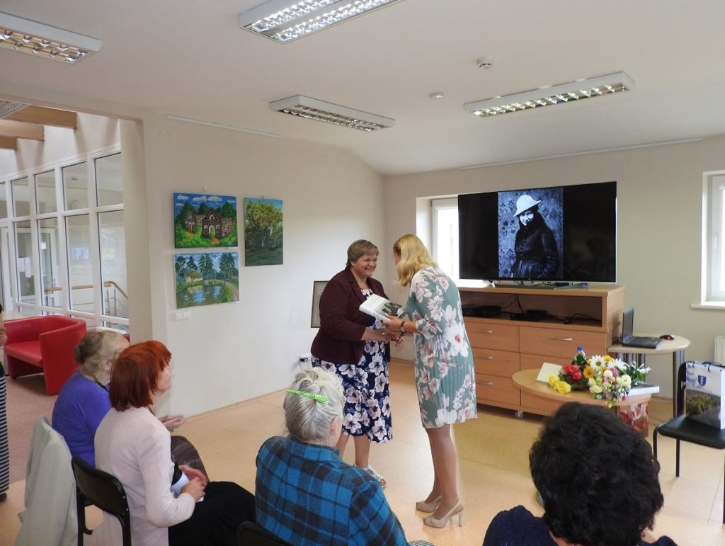 Susitikimo pabaigoje kraštietę sveikino ir už atliktą svarbų itorinį darbą bei įdomų pasakojimą dėkojo savivaldybės administracijos direktorė Jūratė Balinskienė, Tarybos sekretorius Vilius Cibulskas. Naująją knygą visi norintys galėjo nusipirkti, o viena jų su autorės įrašu – dovanota bibliotekai.