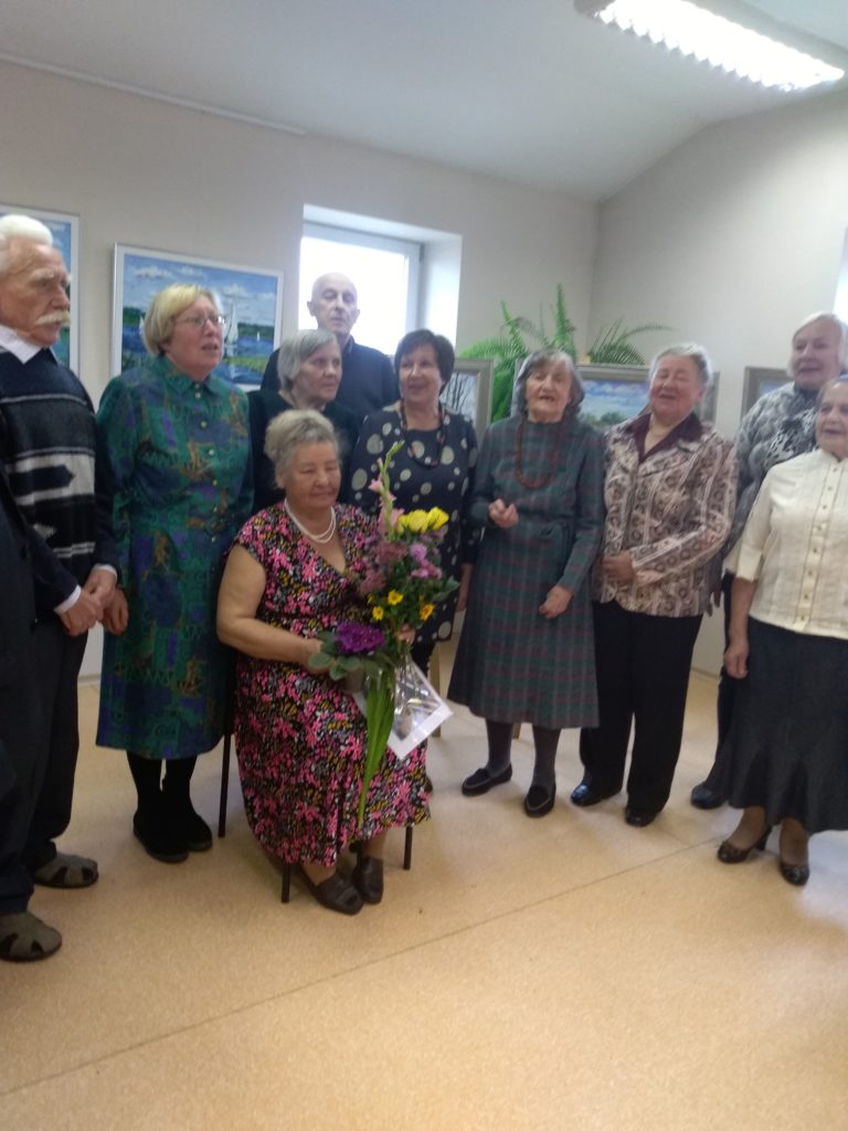 Šį kartą jubiliejų šventė Asia Valeiša. Jai sukako 75 metai. Tradiciškai klubo nariai linkėjo ryžto, laimės, džiaugsmo, geros sveikatos ir saulėtų dienų, teikė gėles, giedojo ilgiausių metų. Einant popietei į pabaigą V. Stukienė paskaitė savos kūrybos eilėraštį apie rudenį.