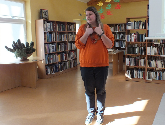 Malvina Zimblienė, Vaikų ir jaunimo kultūrinės edukacijos skyriaus veiklų jaunimui organizatorė,  mokė, kaip pasakojimo metodą taikyti jaunimo ir vyresnių vaikų grupei. Ši amžiaus grupė dar neturi daug komforto zonų, tad svarbu užtikrinti visų grupės narių gerą savijautą, nes grupės dažniausiai neatsimena ką konkrečiai darė, bet atsimena kaip jautėsi.
