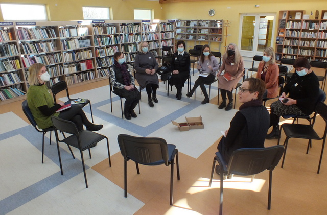 Vėliau, pasidalinusios į dvi grupes, ignalinietės gilinosi į kitas temas.  Angelė Mikelinskaitė, Kultūros paveldo tyrinėjimo ir skaitmeninimo skyriaus vyr. bibliotekininkė, kalbėdama apiepasakojimo istorijų kūrimo būdus, dirbant su suaugusiųjų grupėmis, išskyrė svarbiausią aspektą – kovą prieš vienišumą, juk pasakojimai keičia žmonių gyvenimus, apsaugo nuo žalingų įtakų, skatina dalintis istorijomis su kitais, sukuria progas ir sąlygas draugystei, saviraiškai. Rūta Juzėnienė, Skaitytojų aptarnavimo skyriaus vyr. bibliotekininkė-metodininkė, kalbėjo apie  pasakojimo metodo taikymas marginalizuotoms (socialinės atskirties) grupėms.  Tai įvairios žmonių grupės konkrečioje kultūroje, kontekste ir istorijoje, rizikuojančios patirti daugialypę diskriminaciją dėl skirtingų asmeninių savybių ar pagrindų sąveikos, tokių kaip: biologinė ir socialinė lytis, amžius, etniškumas, religija ar tikėjimas, sveikatos būklė, negalia, lytinė orientacija, lytinė tapatybė, išsilavinimas, pajamos, gyvenimas įvairiose geografinėse vietovėse ir pan.
