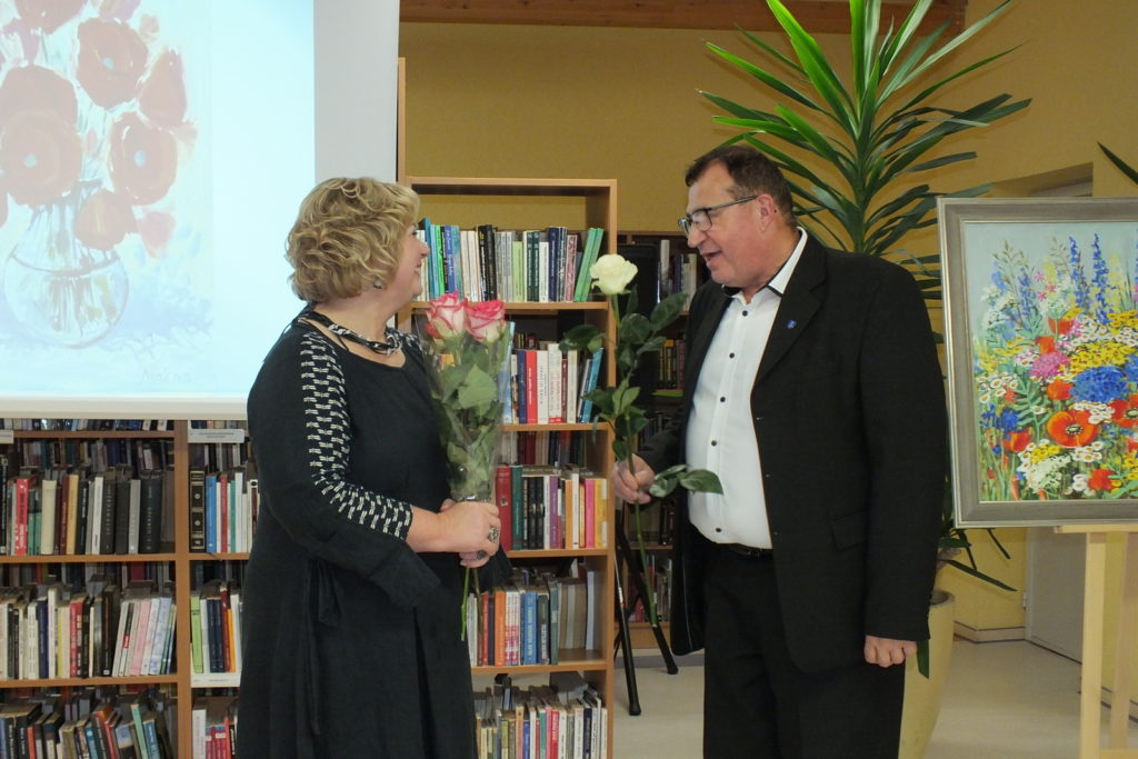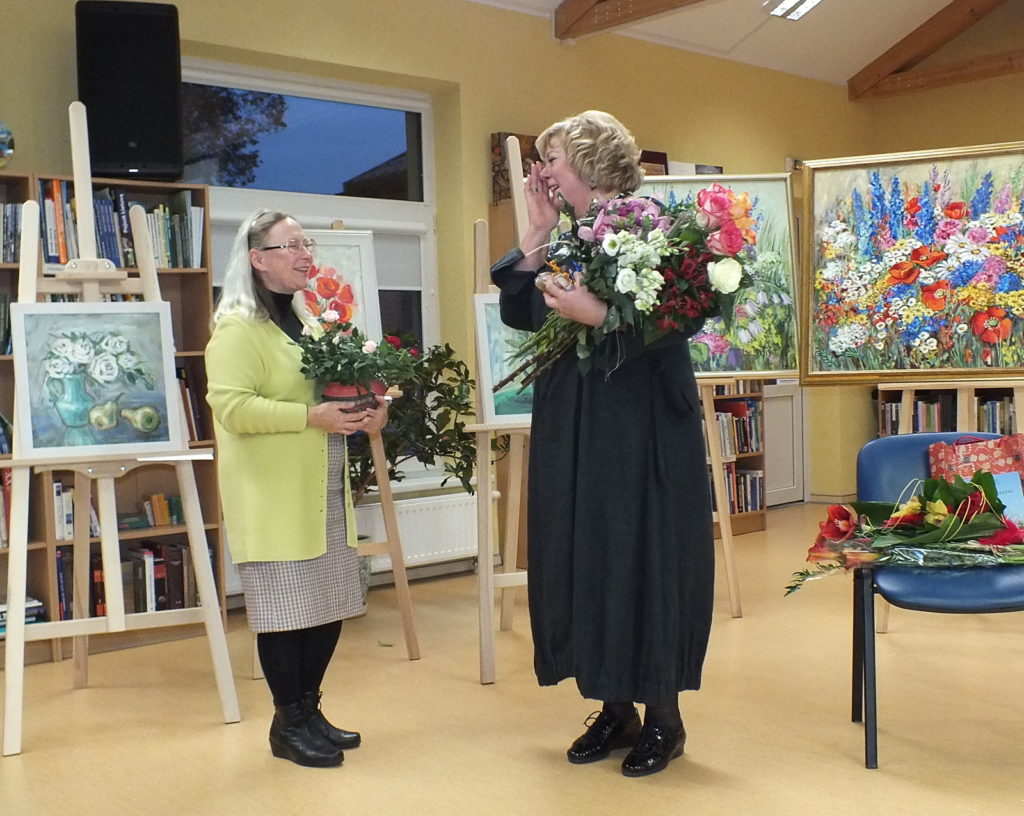 Dailininkę sveikino ir už jos kūrybą, pedagoginę veiklą dėkojo Švietimo ir kultūros skyriaus vedėja Gražina Mackonienė, kultūros vyr. specialistė Rasa Juodagalvienė, Ignalinos kultūros ir sporto centro direktorius Darginas Mikėnas, taip pat savivaldybės tarybos nariai Juozas Rokas, Henrikas Šiaudinis, rajono neįgaliųjų draugijos, krašto muziejaus atstovai, bibliotekininkės, jos bendradarbiai, draugės ir bičiuliai.