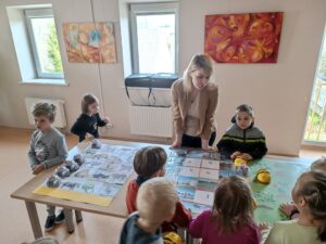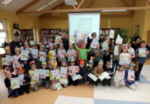 Ignalinos Česlovo Kudabos gimnazijos priešmokyklinės ugdymo grupės mokiniams bibliotekos darbuotojos pristatė „Bee-Bot“ robotus 2022-05-11