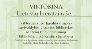 Pasitikrinkite savo žinias bibliotekininkių Kristinos Ignatjevos ir Rasos Trubilienės sukurtoje viktorinoje 2020-04-22