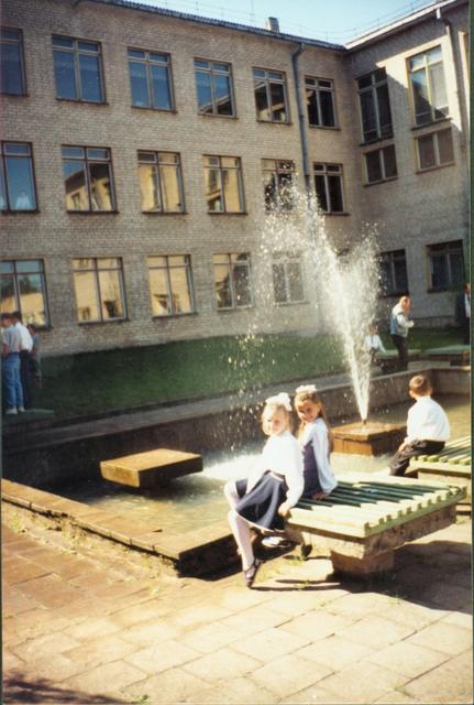 Česlovo Kudabos mokyklos fontanas. 1997 m. Iš asmeninio A. Jakubovskienės albumo.