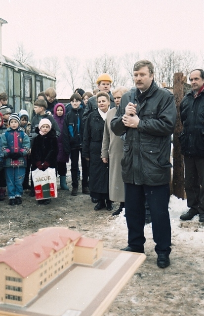 Ignalinos gimnazijos maketo pristatymas. 1998 m. J. Adamkevičiaus nuotrauka.