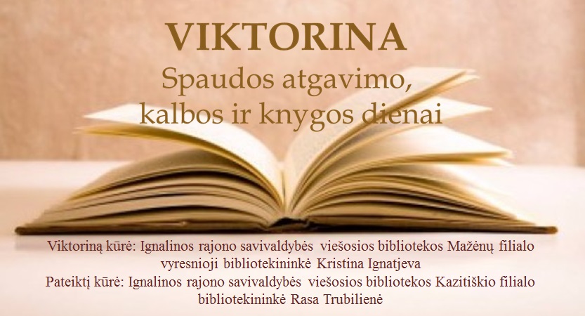 Pradžia » Naujienos » Bibliotekininkės Kristina ir Rasa jums siūlo viktoriną skirtą Spaudos atgavimo, kalbos ir knygos dienai