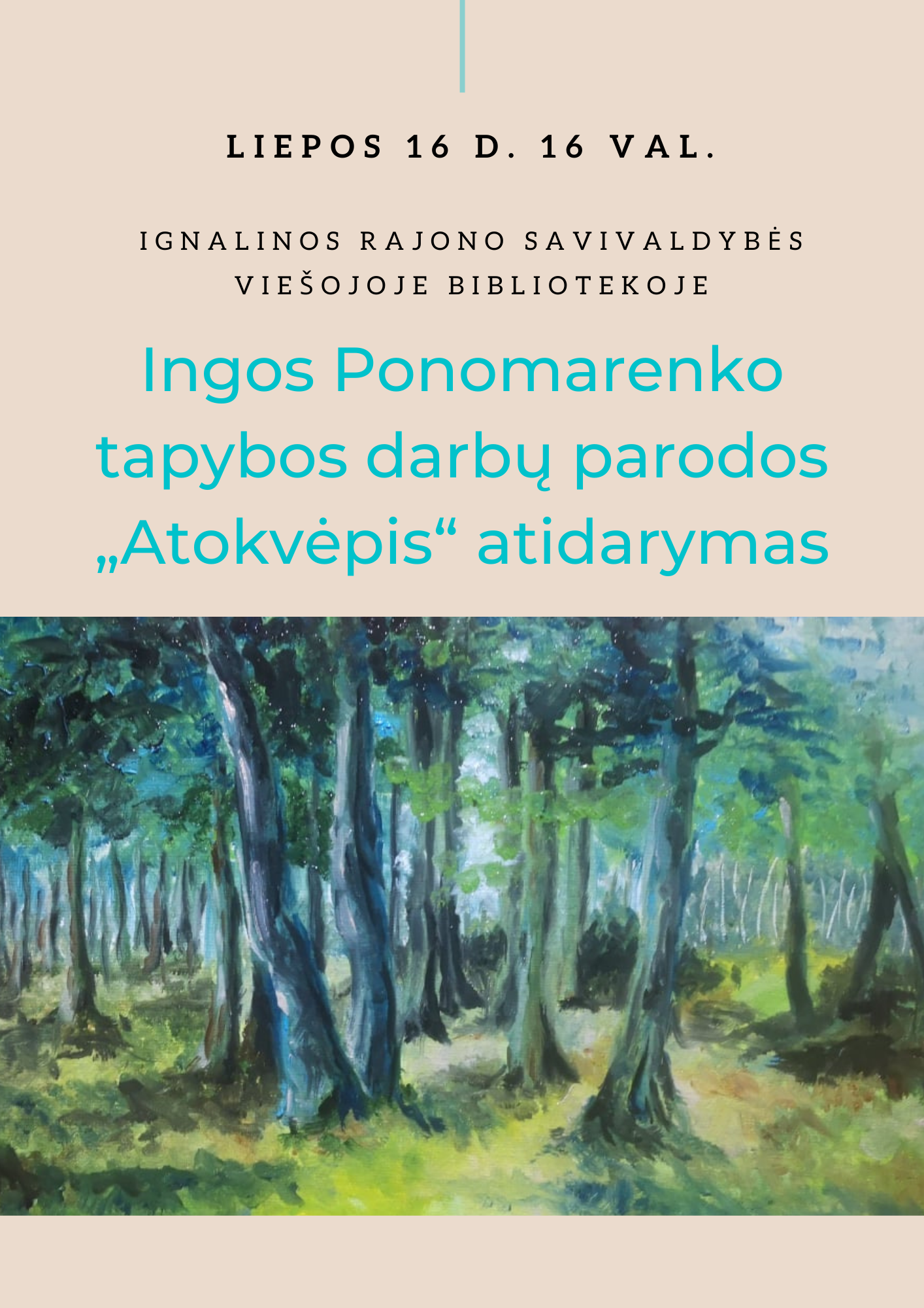 Liepos 16 d. 16.00 val. Ingos Ponomarenko parodos „Atokvėpis“ pristatymas.