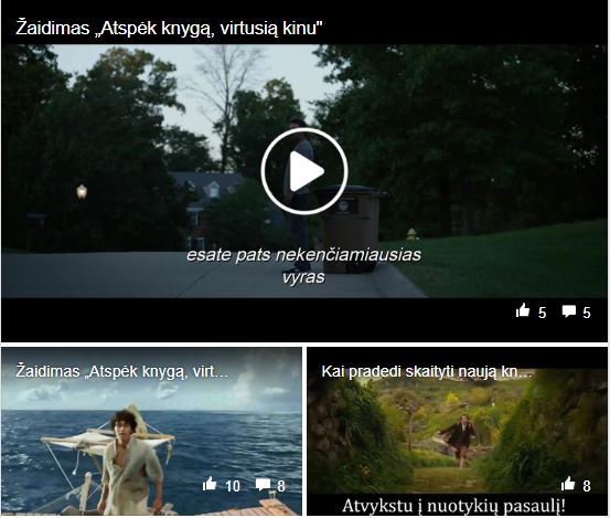 Balandžio 6–10 dienomis bibliotekos Facebook paskyroje vyko žaidimas „Atspėk knygą, virtusią kinu”. Kiekvieną dieną buvo paskelbiama trumpa filmo ištrauka, reikėjo atspėti, kokia knyga buvo ekranizuota. Šiame žaidime į prizą pretendavo tie bibliotekos skaitytojai, kurie bent į vieną užduotį atsakė teisingai. Žaidime dalyvavo 19 dalyvių. Džiugu, kad buvo tokių dalyvių, kurie kasdien atsakinėjo į žaidimo klausimus. Burtai lėmė, kad konkurso nugalėtoja tapo Rūta Skudutytė. Sveikiname, o bibliotekos prizą – puodelį – galėsite atsiimti vos tik biblioteka atvers duris.
