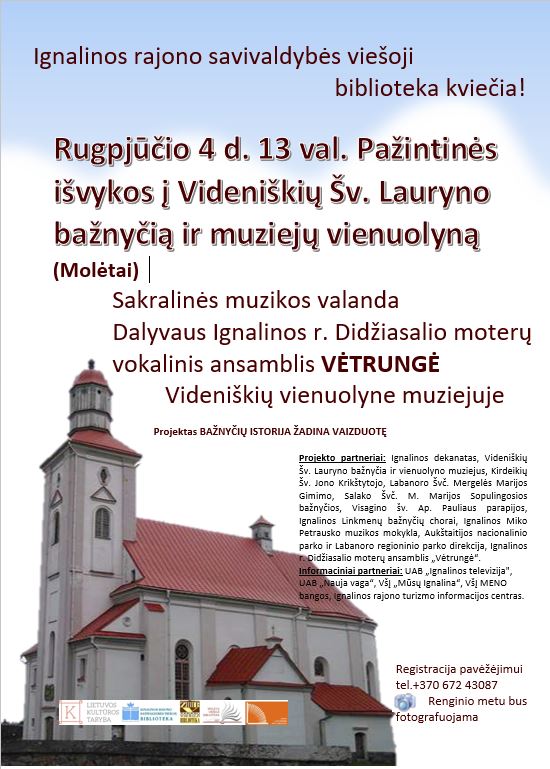 Rugpjūčio 4 d. 13 val. Pažintinės išvykos į Videniškių Šv. Lauryno bažnyčią ir muziejų vienuolyną (Molėtai)