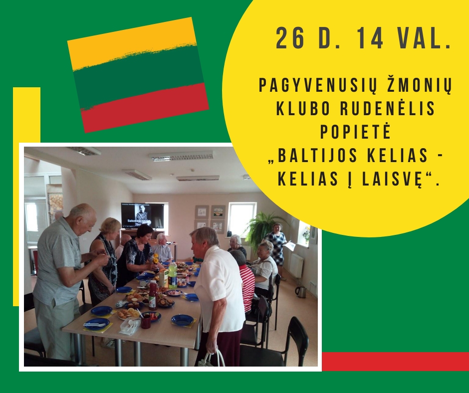 26 d. 14 val. pagyvenusių žmonių klubo RUDENĖLIS popietė „Baltijos kelias – kelias į laisvę“.
