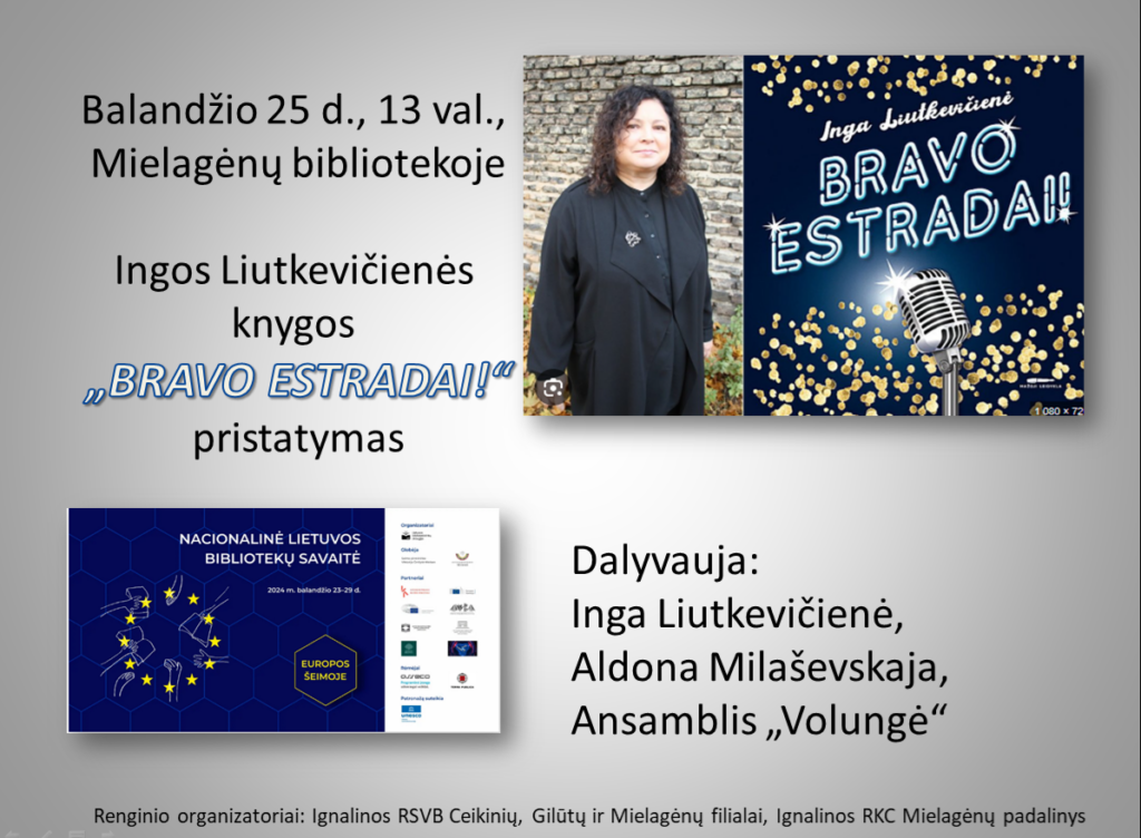 25 d. 13.00 val. Ingos Liutkevičienės knygos „Bravo estradai“ pristatymas.