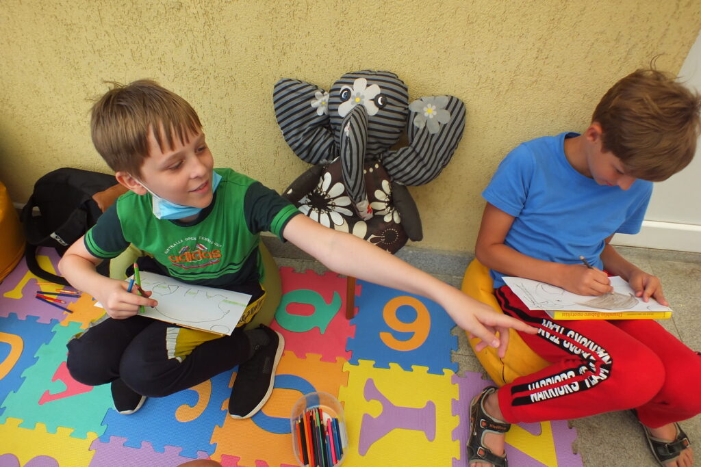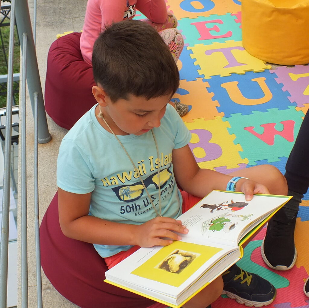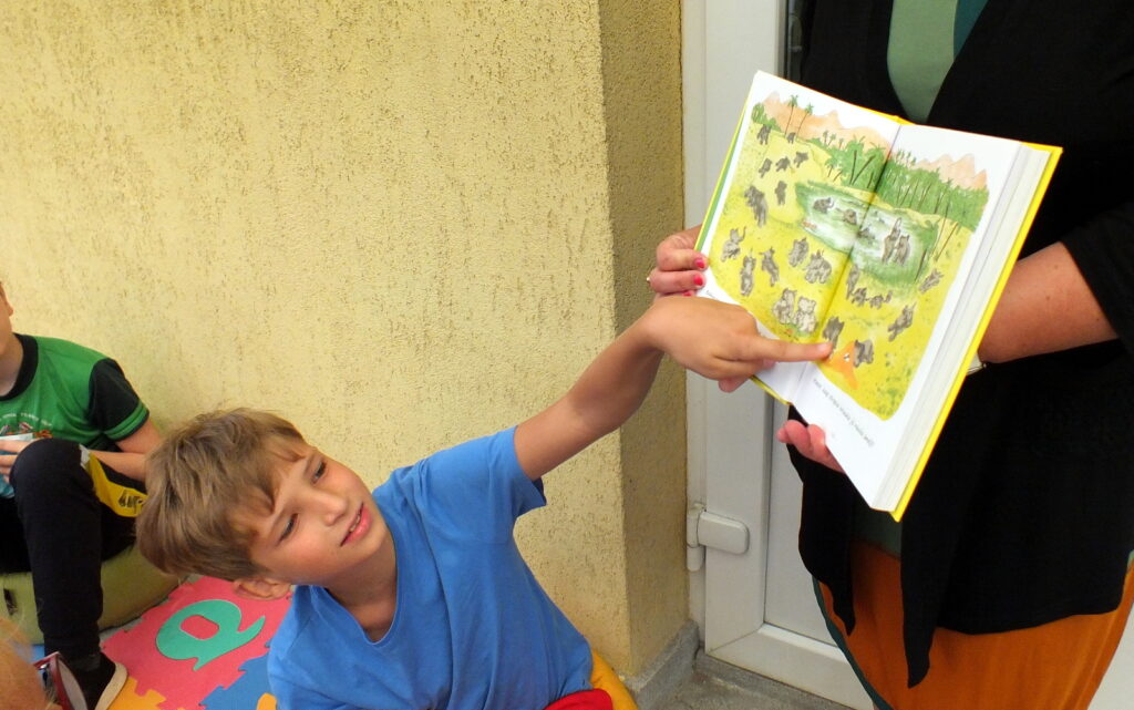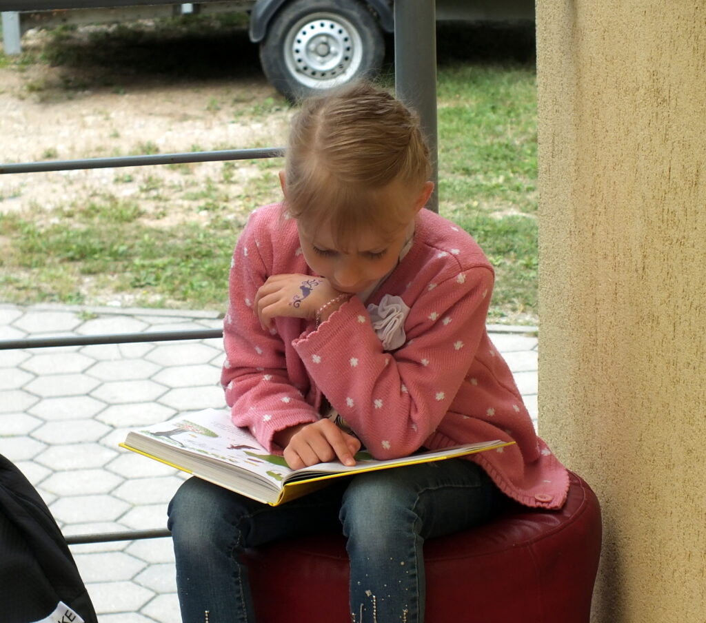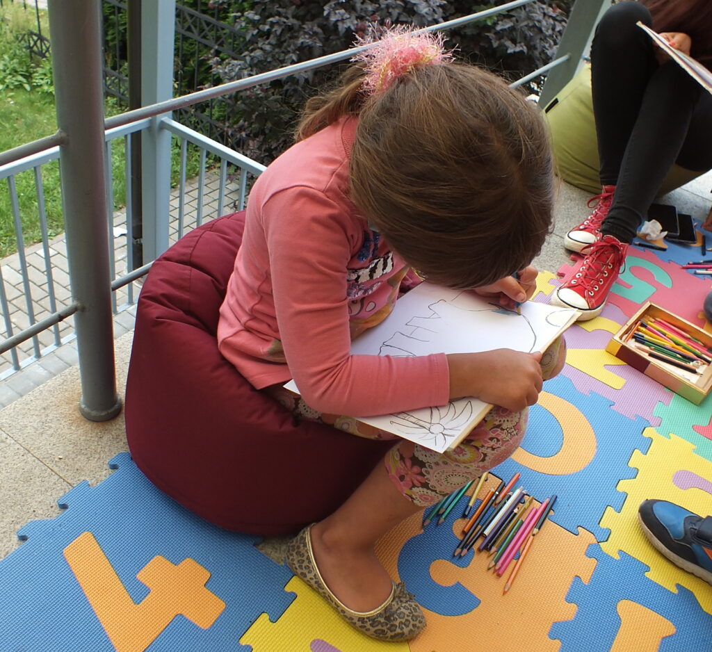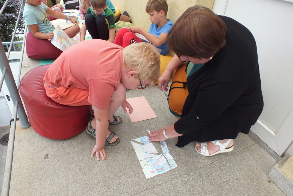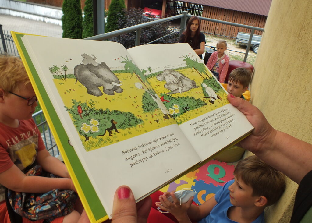 Rugpjūčio 12 dieną vaikai susirinko į vasaros garsinius skaitymus Ignalinos viešosios bibliotekos kiemelyje. Buvo skaitoma Jean de Brunhoff Skaitė knygelė „Dramblio Babaro nuotykiai“. Šioje knygoje net kelios istorijos apie geriausią dramblį pasaulyje. Vaikai skaitė pirmąją, kurioje pasakojama kaip drambliukas pateko į miestą, kaip pats išsirinko sau kostiumą, skrybėlę, batus, tapo karaliumi ir patyrė daug nuotykių. Perskaitę smagią istoriją mažieji kūrė piešinį-dėlionę: spalvino, karpė, dėliojo… Greičiausiai sudėlioti pavyko Kamilei ir jos sesutei Jurgilei. Gal todėl, kad dviese? 🙂