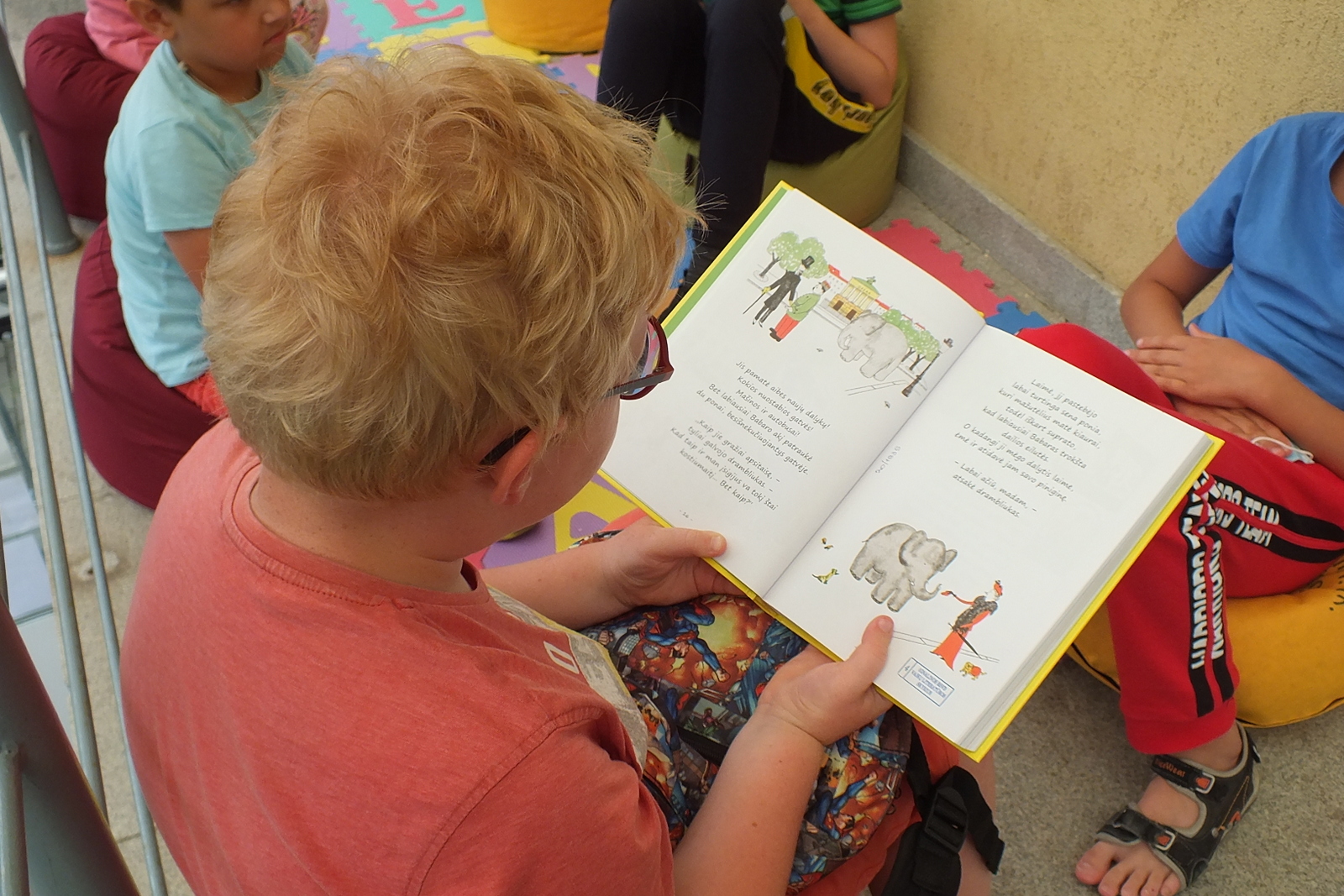 Rugpjūčio 12 dieną vaikai susirinko į vasaros garsinius skaitymus Ignalinos viešosios bibliotekos kiemelyje. Buvo skaitoma Jean de Brunhoff Skaitė knygelė „Dramblio Babaro nuotykiai“. Šioje knygoje net kelios istorijos apie geriausią dramblį pasaulyje. Vaikai skaitė pirmąją, kurioje pasakojama kaip drambliukas pateko į miestą, kaip pats išsirinko sau kostiumą, skrybėlę, batus, tapo karaliumi ir patyrė daug nuotykių. Perskaitę smagią istoriją mažieji kūrė piešinį-dėlionę: spalvino, karpė, dėliojo… Greičiausiai sudėlioti pavyko Kamilei ir jos sesutei Jurgilei. Gal todėl, kad dviese? 🙂