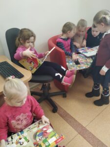 Balandžio 6 d. bibliotekoje lankėsi Ignalinos Šaltinėlio mokyklos „Žiogelių“ grupės vaikai. Bibliotekininkė Rūta papasakojo vaikams kur gyvena knygutės, kaip reikia su jomis elgtis, kaip tapti bibliotekos skaitytojais. Dar bibliotekininkė mažiesiems skaitė Emily MacKenzie knygelę „Ieškomas knygų vagis – triušis Ralfis“. Ralfis labai mėgo skaityti knygas. Kai knygų pritrūko, triušis ėmė jas vogti, o, pasirodo, jam tereikėjo ateiti į biblioteką… Vėliau vaikai susipažino su sensorine įranga – klausėsi skaitomos Orianne Lallemand, Eleonore Thuillier knygos „Kaip vilkas spalvas keitė“, žaidė interaktyvius žaidimus, lankėsi Mažylių skaitykloje. Ekskursija po biblioteką mažiesiems labai patiko.