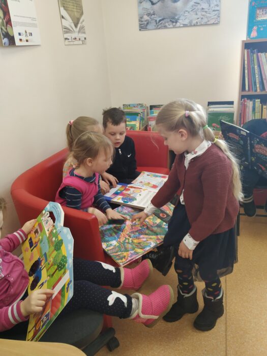 Balandžio 6 d. bibliotekoje lankėsi Ignalinos Šaltinėlio mokyklos „Žiogelių“ grupės vaikai. Bibliotekininkė Rūta papasakojo vaikams kur gyvena knygutės, kaip reikia su jomis elgtis, kaip tapti bibliotekos skaitytojais. Dar bibliotekininkė mažiesiems skaitė Emily MacKenzie knygelę „Ieškomas knygų vagis – triušis Ralfis“. Ralfis labai mėgo skaityti knygas. Kai knygų pritrūko, triušis ėmė jas vogti, o, pasirodo, jam tereikėjo ateiti į biblioteką… Vėliau vaikai susipažino su sensorine įranga – klausėsi skaitomos Orianne Lallemand, Eleonore Thuillier knygos „Kaip vilkas spalvas keitė“, žaidė interaktyvius žaidimus, lankėsi Mažylių skaitykloje. Ekskursija po biblioteką mažiesiems labai patiko.