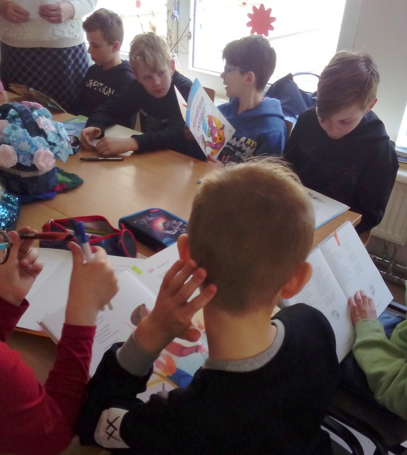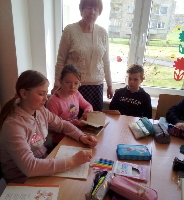 Nacionalinės Lietuvos bibliotekų savaitės metu ketvirtokai su mokytoja A. Misiūniene susirinko į Didžiasalio biblioteką. Garsinių skaitymų popietėje buvo paminėta artėjanti Motinos diena.