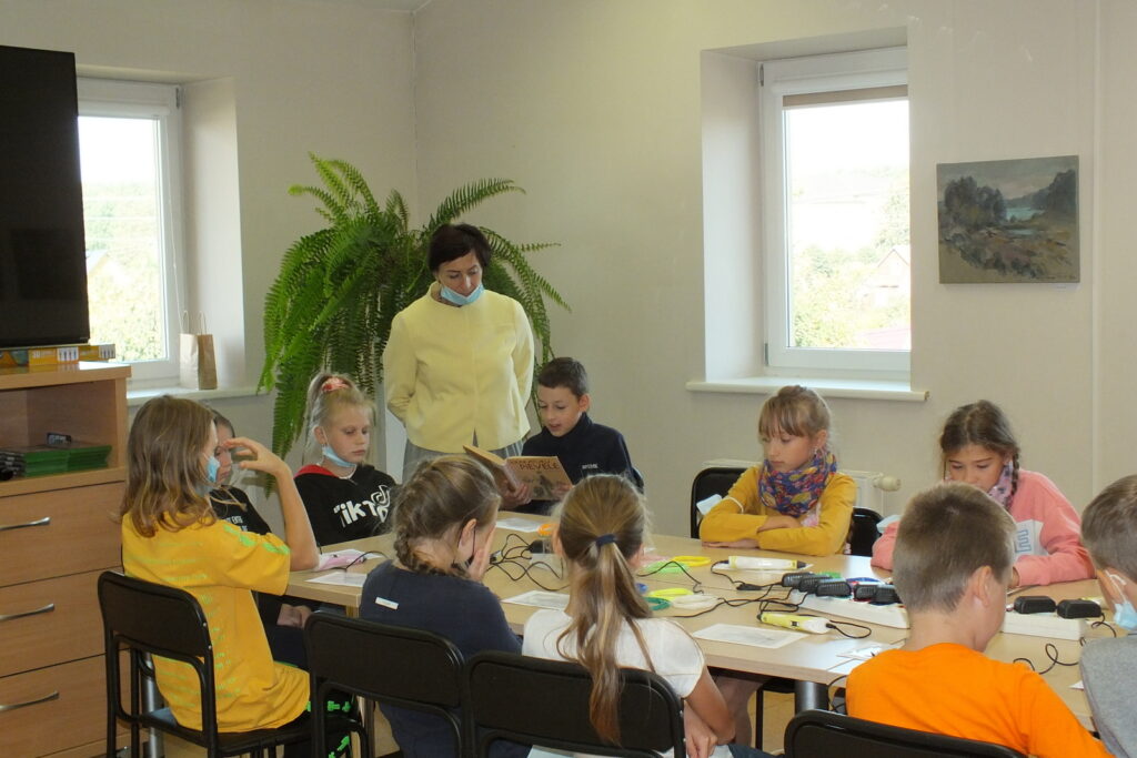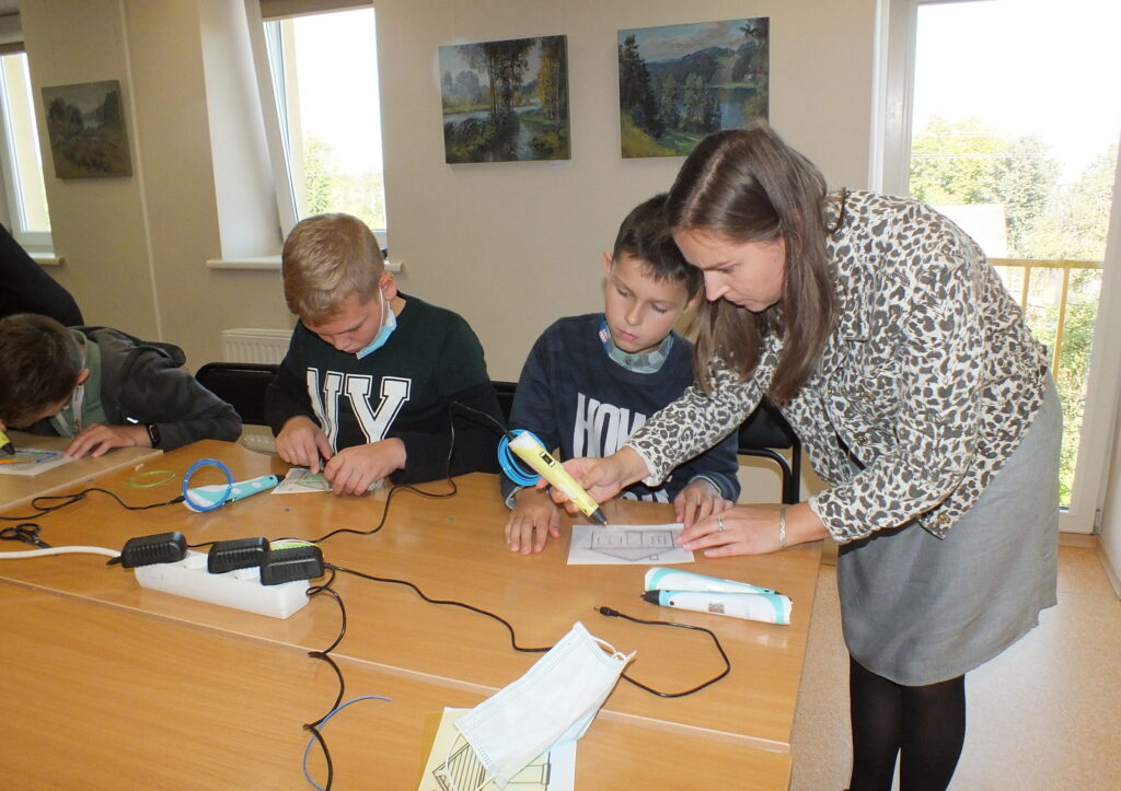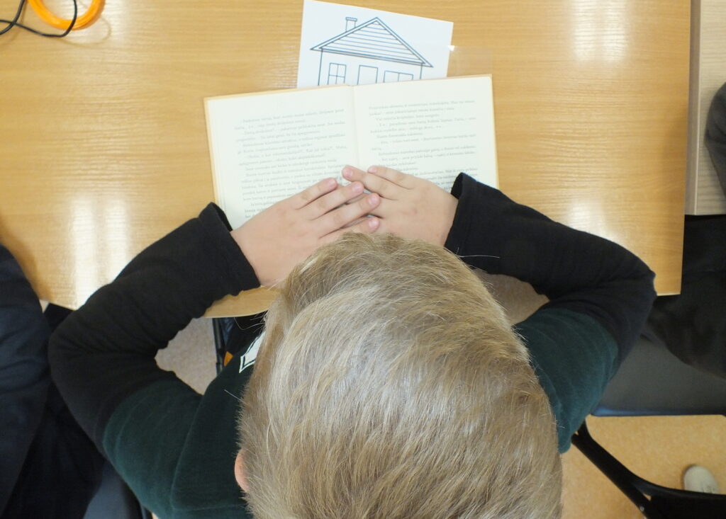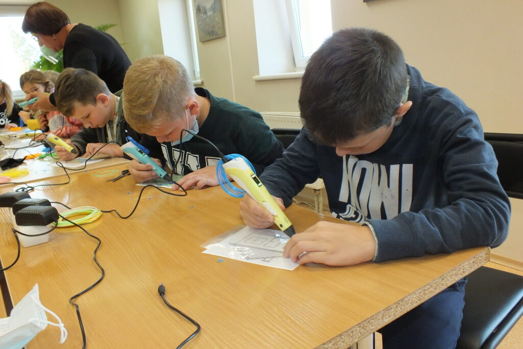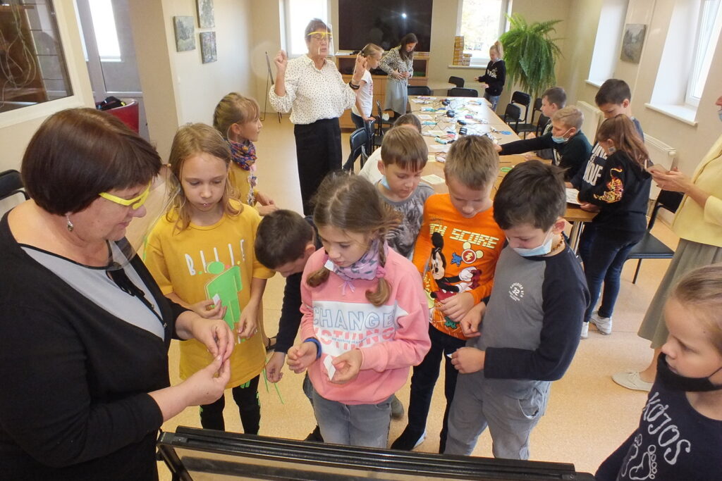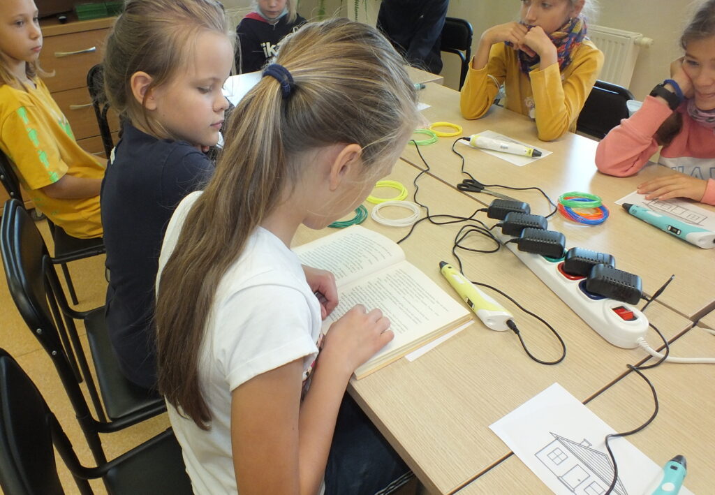 Šios knygos  trečią skyrių „Didžiaausė senė ir liūdna jos istorija“ garsiai skaitė  patys vaikai, o vėliau su 3D pieštukais  piešė trobelę, kurioje jaukiai gyvena knygos herojai. Darbelius atlikti vaikams sekėsi puikiai, taigi spalvotais nameliais nešini jie grįžo į mokyklą.