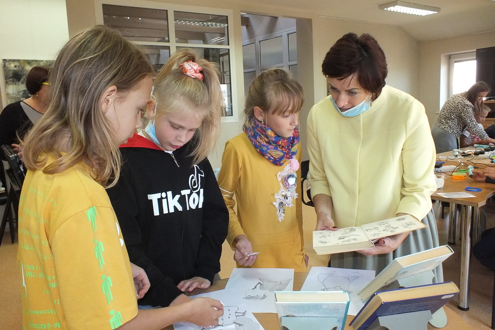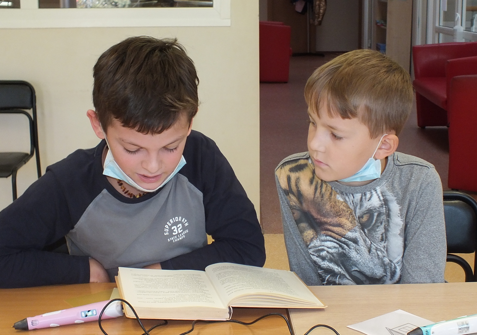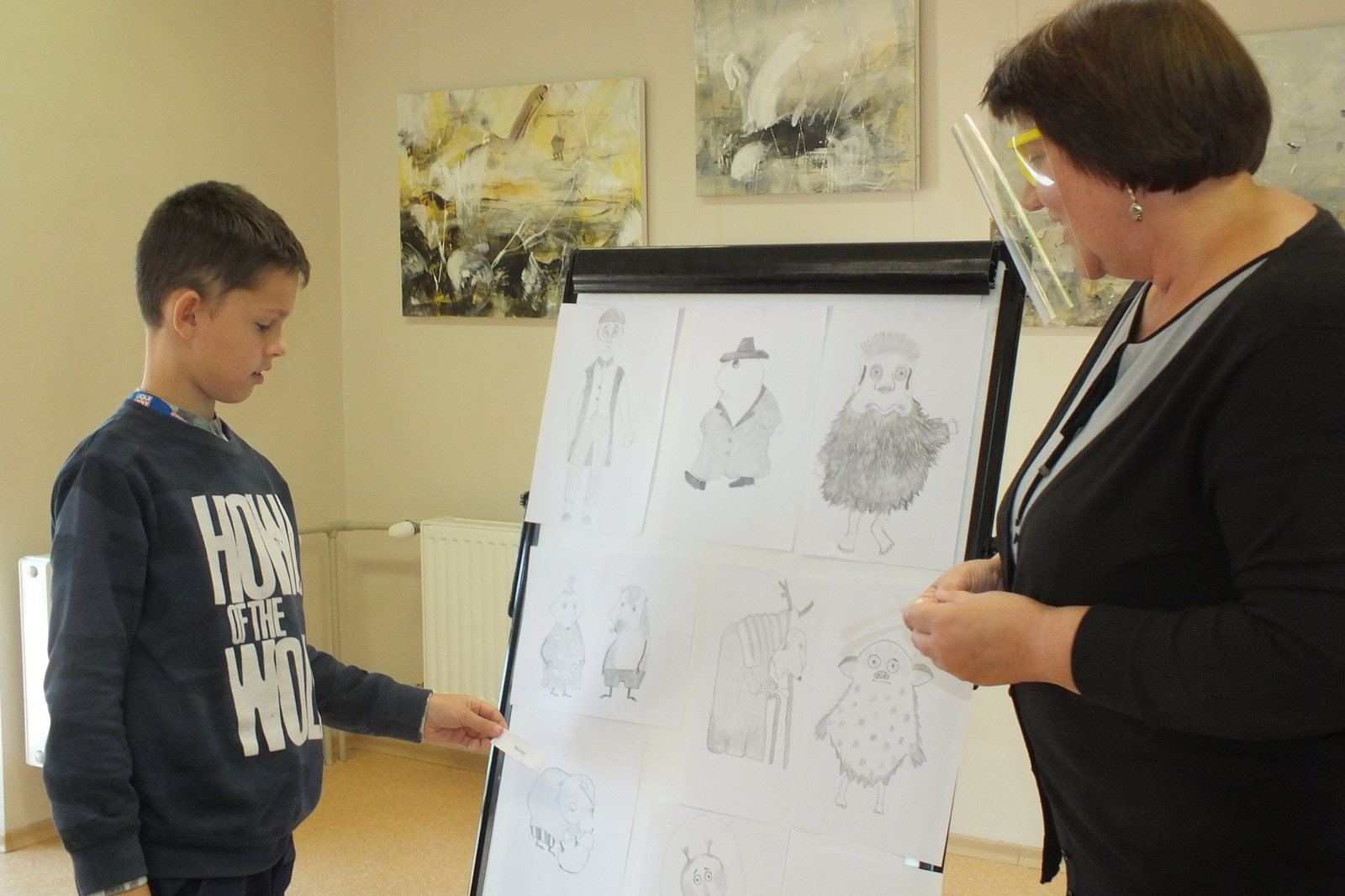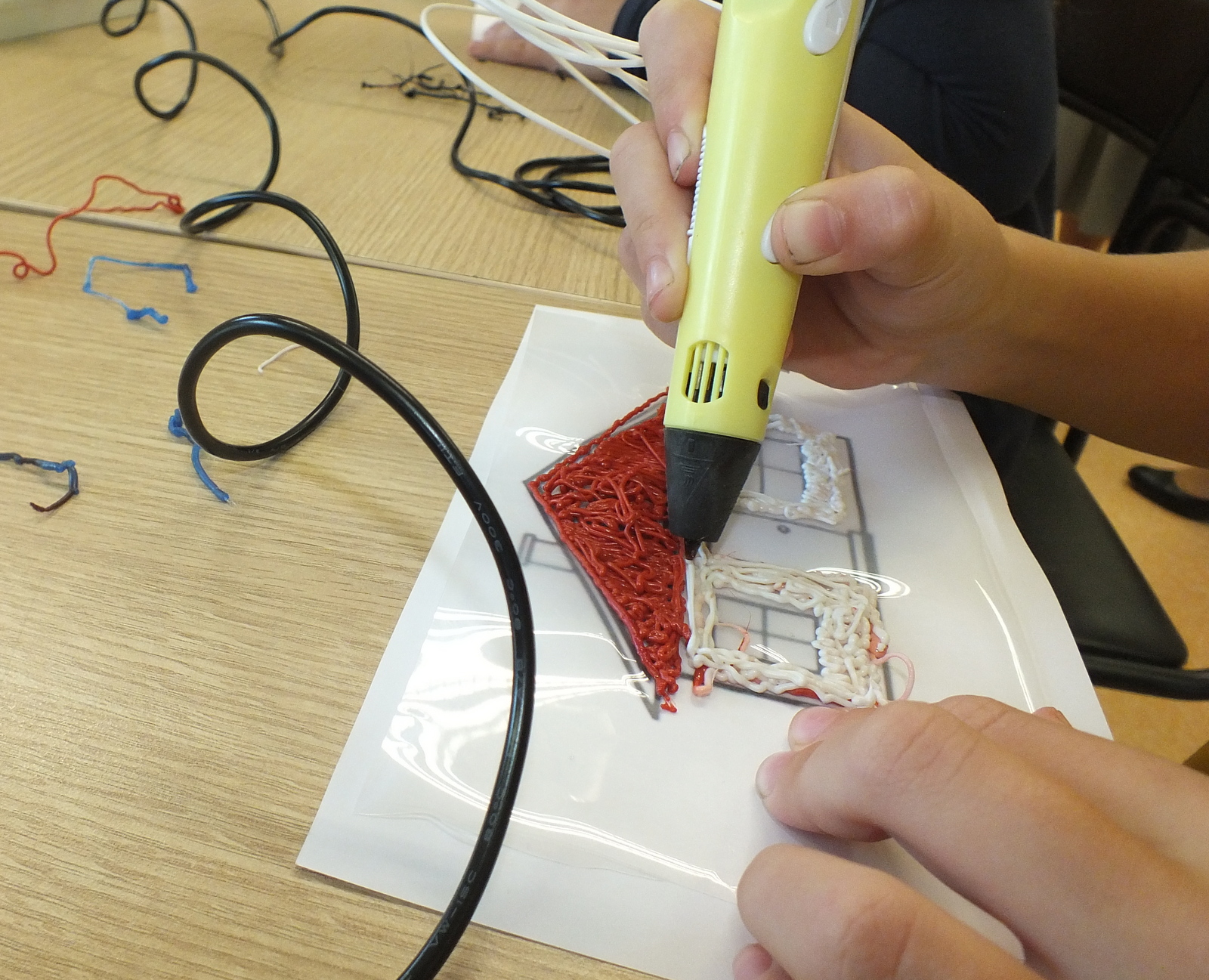 Šios knygos  trečią skyrių „Didžiaausė senė ir liūdna jos istorija“ garsiai skaitė  patys vaikai, o vėliau su 3D pieštukais  piešė trobelę, kurioje jaukiai gyvena knygos herojai. Darbelius atlikti vaikams sekėsi puikiai, taigi spalvotais nameliais nešini jie grįžo į mokyklą.