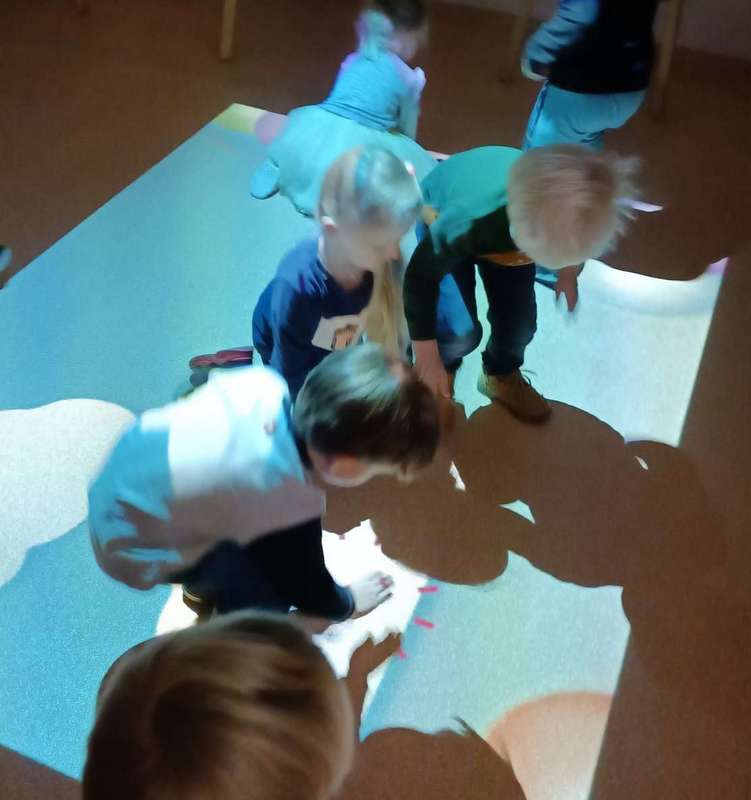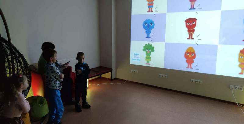 Vykdė ir kitas edukacines veiklas – piešė šviečiančiame molberte, išbandė šviečiantį staliuką su smėliu ir akmenukais, interaktyvias grindis, sensorinį kambarį.