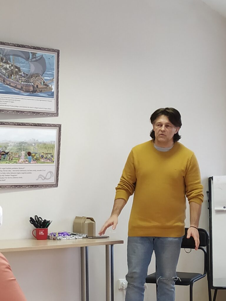 Renginį vedė ir nuostabiais muzikos garsais dalinosi VRM orkestro vyr. dirigentas, skaitovas Eimantas Anskaitis. Rašytojas G. Kaltesnis kalbėjo apie skaitymo svarbą, rašymą, kaip gimė idėja kurti knygų seriją apie Rainiuką-katiną Pikselį.  Tai kelioninių nuotykių knygos, kurios skirtos žingeidiems ir smalsiems vaikams, jaunimui ir netgi suaugusiems. 2018 metais  išėjo pirmoji knyga „Rainiuko Pikselio kelionės po Lietuvą“. 2020 metais skaitytojus pasiekė atroji knyga „Rainiuko Pikselio ir pradinuko Petriuko nuotykiai Londone“. Knygoje kalbama apie emigraciją. Katinas Pikselis kartu su Petriuku vyksta į Londoną surasti ir kviesti grįžti namo į Lietuvą augintinius, o paskui juos norės grįžti ir jų šeimininkai. Knygoje pilna detektyvinių nuotykių, edukacinių elementų, svarbių, lankytinų vietų aprašymų bei detalių piešinių.