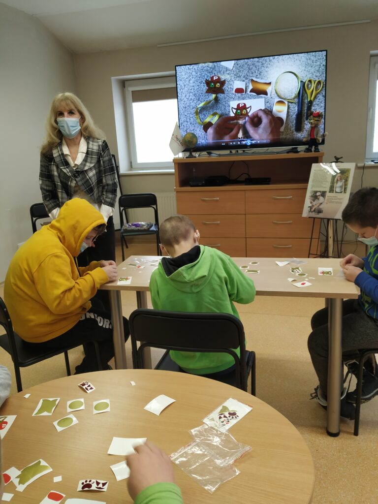 Profesionali animatorė R. Anskaitienė puikiai papildė tekstą iliustracijomis, nuo kurių sunku atitraukti akis.  Ji papasakojo vaikams  animatorės darbo subtilybes, kaip sekėsi  atvaizduoti katino keliones bei nuotykius, todėl šią knygą galima skaityti ir piešiniais. Renginio dalyviai galėjo pasiklausyti ir pasižiūrėti knygos ištraukos videoskaitymą.  Ištraukas skaitė E. Anskaitis.