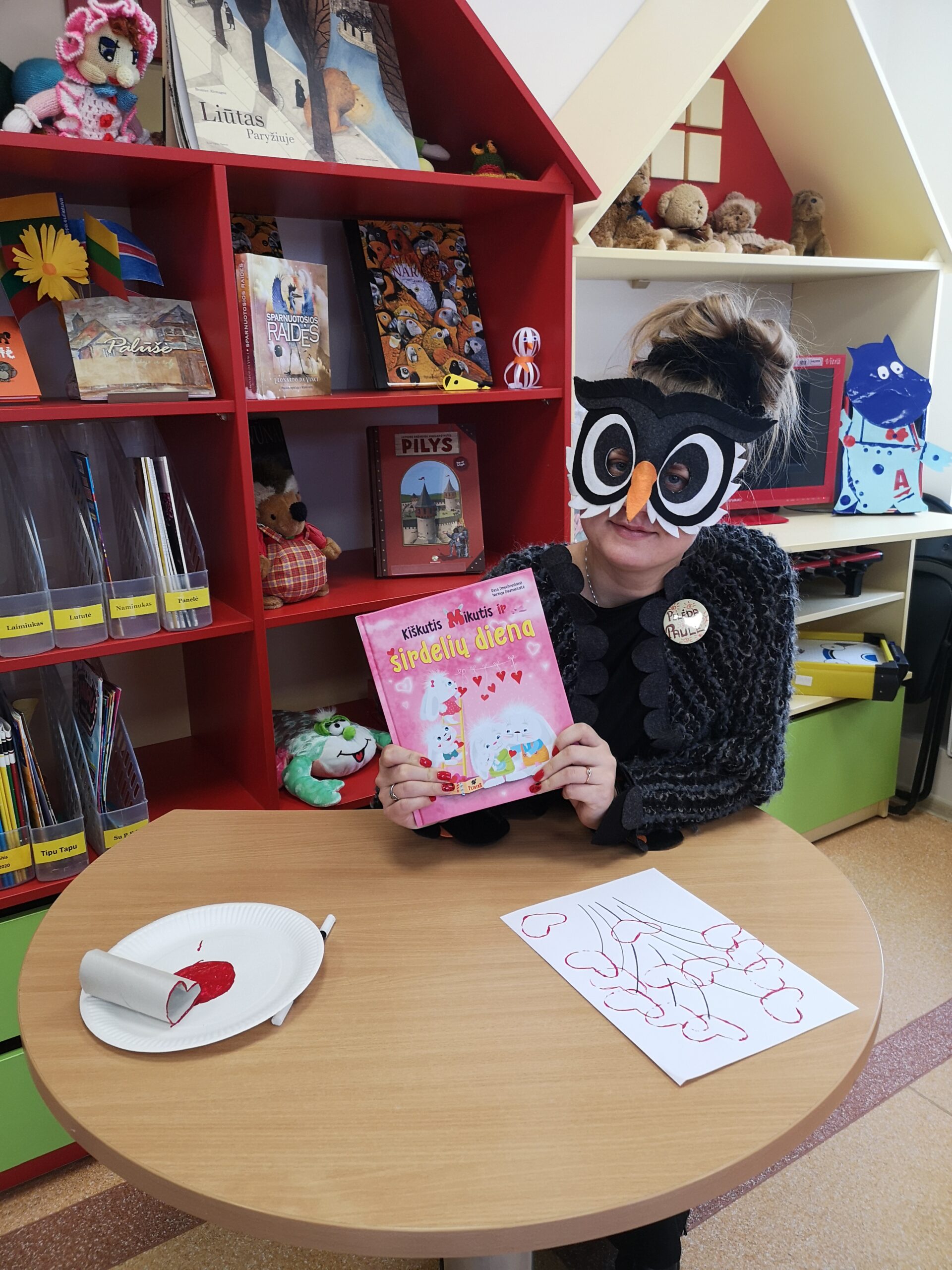 Pelėda Paulė skaito ištrauką „Mikučio meilė“ iš Rasos Dmuchovskienės ir Neringos Daumantaitės knygos „Kiškutis Mikutis ir širdelių diena“.![]()