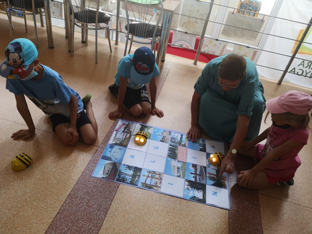 O pakilę į antrą bibliotekos aukštą Atradimų erdvę, rado dar kitų veiklų: Robotukai–bitutės, interaktyvios grindys ,interaktyvus stalas, futbolo žaidimas.
