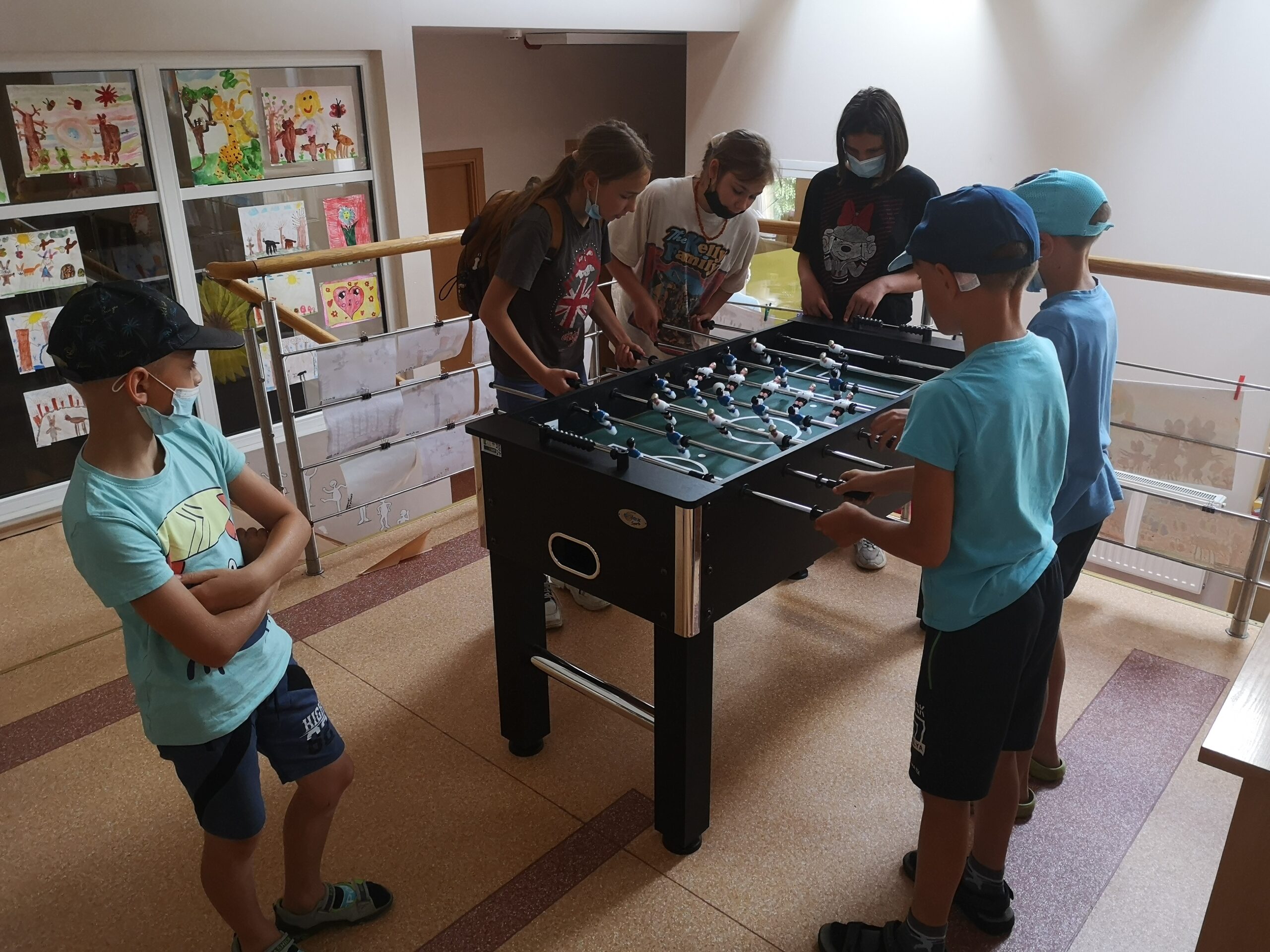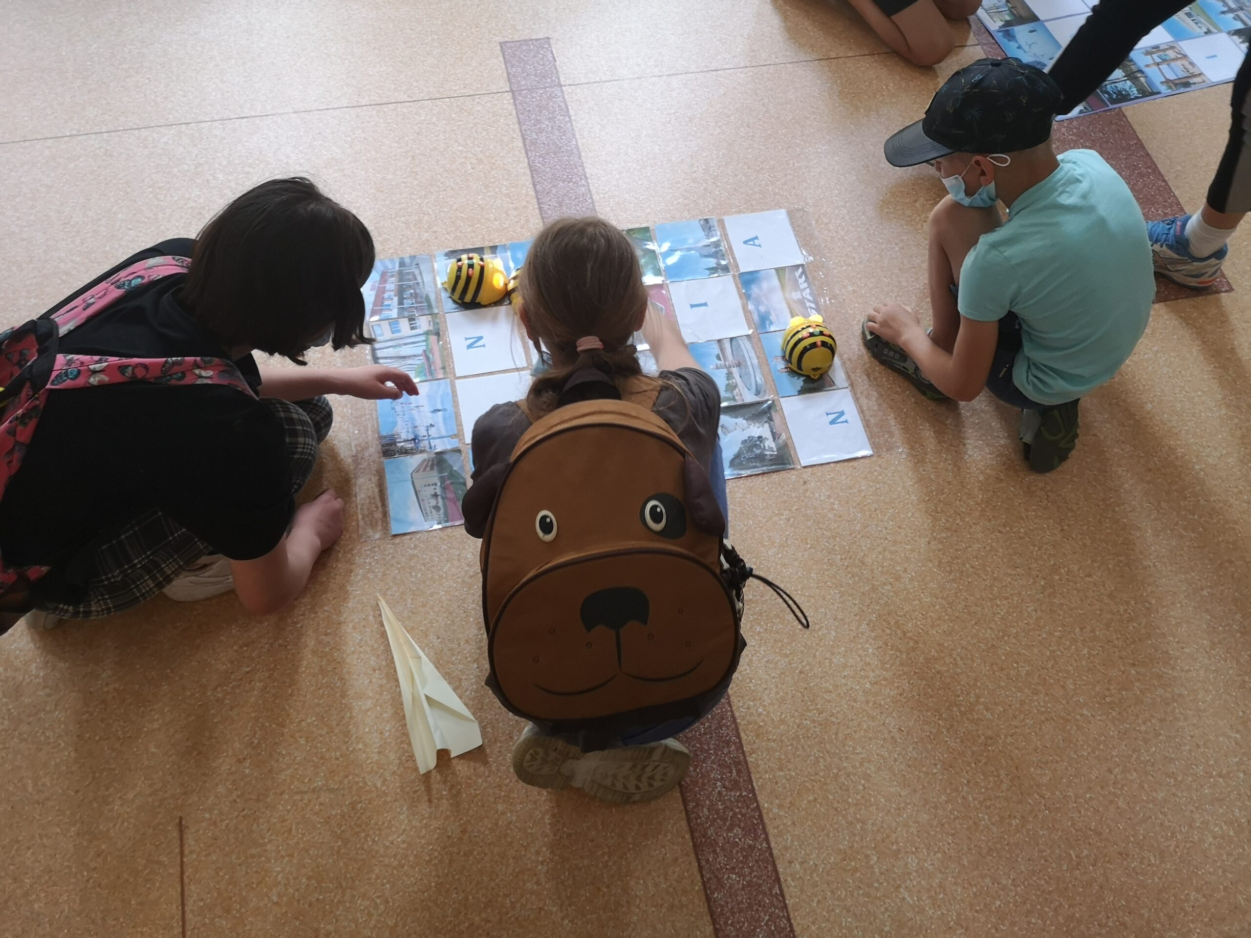 O pakilę į antrą bibliotekos aukštą Atradimų erdvę, rado dar kitų veiklų: Robotukai–bitutės, interaktyvios grindys ,interaktyvus stalas, futbolo žaidimas.