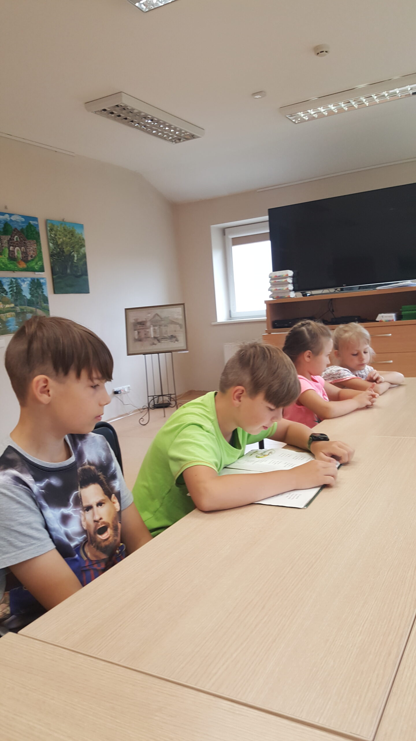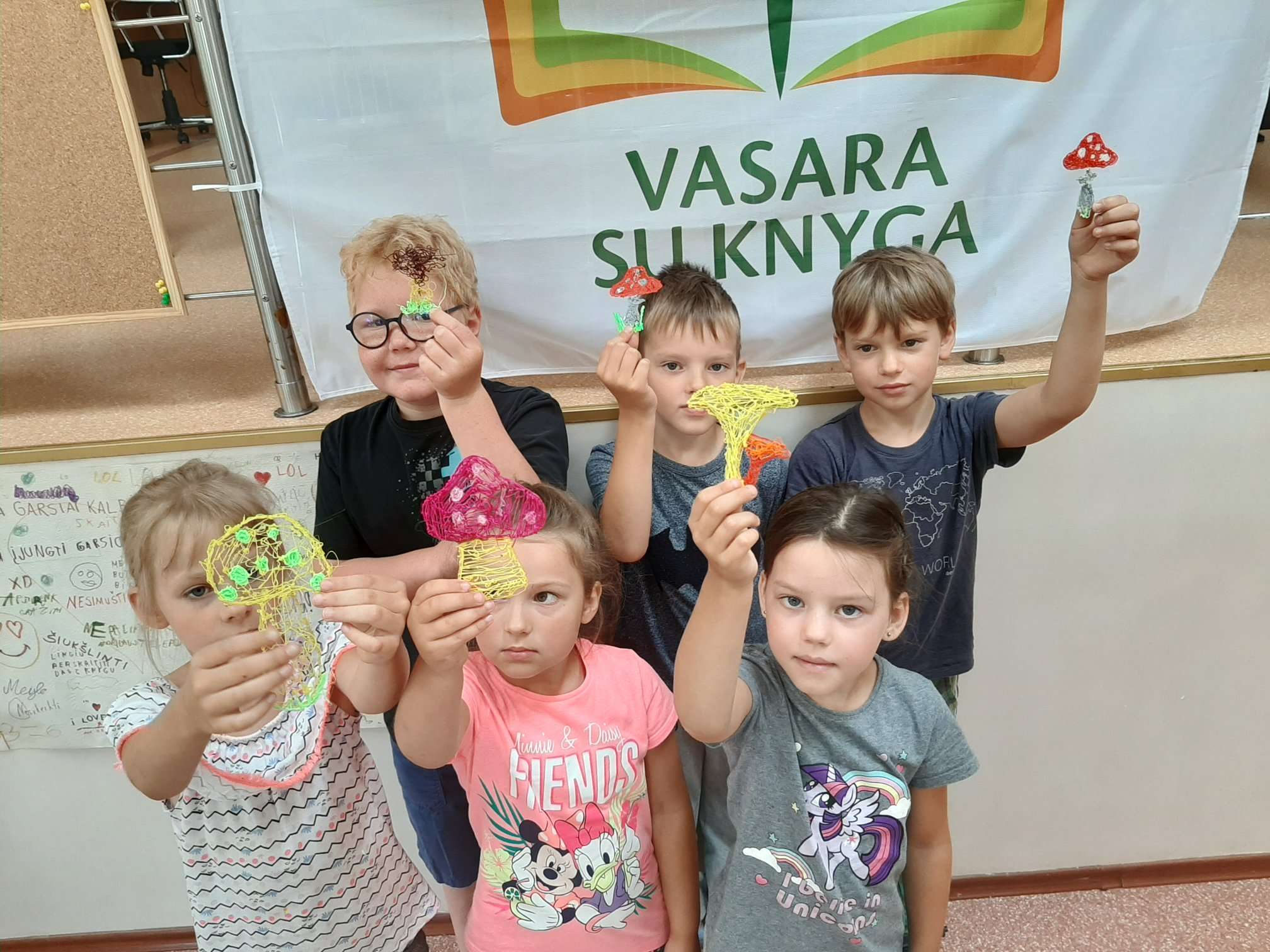Liepos 29 d. Vaikų literatūros skyriuje vėl vyko vasaros garsiniai skaitymai. Vaikai skaitė Justino Marcinkevičiaus knygutę „Grybų karas“ apie tai, kaip grybai ruošėsi eiti į karą, nors vienas šleivas, kitas kreivas, dar kuprotas… Miške auga daug įvairiausių grybų, reikia tik juos pažinti, žinoti kurie valgomi, o kurie nuodingi. Bibliotekininkė Rūta rodė paveikslėlius su grybais. Vaikams puikiai sekėsi atpažinti baravyką, ūmėdę, kazlėką ir kitus grybus. Virginija pasiūlė vaikams 3D pieštukais piešti grybus. Visiems labai patiko šis smagus užsiėmimas. Darbeliai gavosi puikūs.