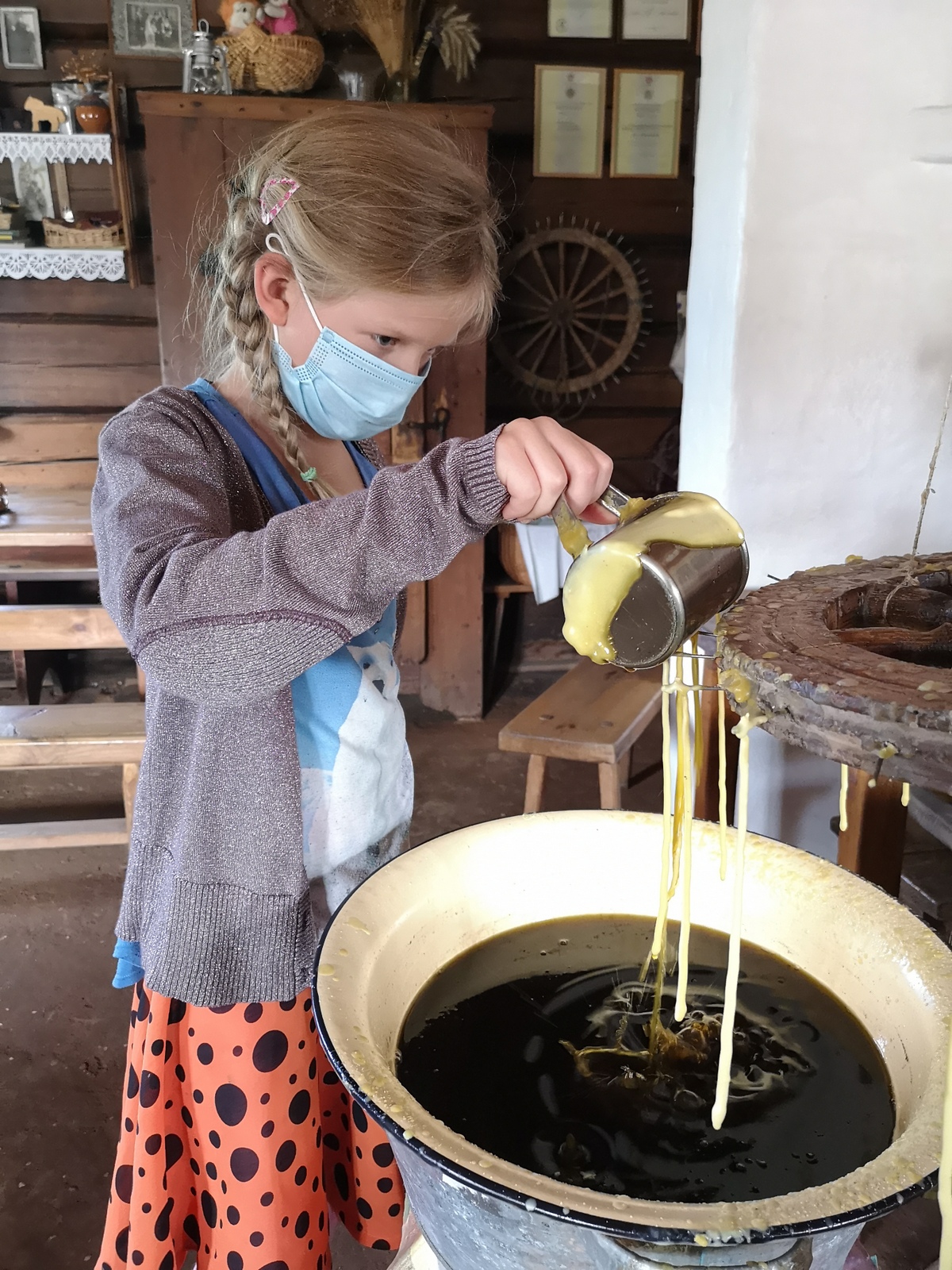 Ant pirštų skaičiuojame paskutines vasaros dieneles. Ignalinos viešosios bibliotekos vaikų literatūros skyriaus lankytojai susirinko į paskutinį skaitymo akcijos „Vasara su knyga“ susitikimą. Šį kartą be skaitymų, be susitikimo bibliotekos kiemelyje, be naujų istorijų, tačiau su naujais potyriais Niūronių kaime esančiame Arklio muziejuje. Ankstyvą rytą, su gera nuotaika pajudėjome ieškoti naujų įspūdžių. Kelionė neprailgo, nes vaikai dalinosi vasaros atostogų akimirkomis, džiaugėsi galėdami kartu leisti laiką. Niūronyse pasitiko gidas, kuris supažindino su muziejaus paskirtimi bei senaisiais amatais. Sužinoję daugiau apie arklius, jų priežiūrą, apžiūrėję tautodailės drožinius, austus rankdarbius, dalyvavome žvakių liejimo edukacijoje. Pirkios gaspadinė papasakojo apie paslaptingą bičių gyvenimą, jų elgseną, bičių vaško gavimo būdus, vaško ir medaus savybes, jų naudą žmogui, tada vaikai išbandė ir patį žvakių liejimą. O pagamintą žvakelę galėjo pasiimti atsiminimui. Po edukacijos laukė lietuvių liaudies žaidimai lauke. O koks Arklio muziejus be galimybės pasivažinėti kinkiniu? Tad smagiai įsitaisę vežimaityje riedėjome Niūronių kaimo keliuku stebėdami aplinką ir bendraudami. Daugeliui vaikų tai buvo dar viena nauja patirtis! O kadangi muziejaus teritorijoje daug medinių sūpynių, puoštų žirgais – supomės, sėdėjom, žaidėm ir išėjom tik tada, kai visi žirgai buvo išjodinėti!